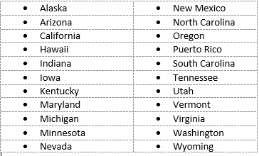 The following 22 states or territories have OSHA-approved State Plans/state agencies that have jurisdiction over private workplaces: